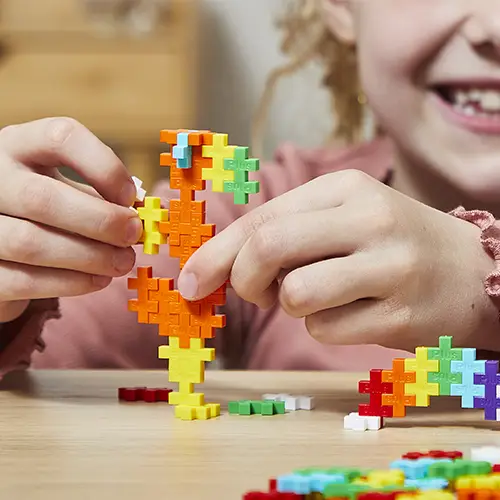 Blanc, violet, bleu, vert, jaune, orange et rouge : un arc-en-ciel complet en 100 pièces Plus-Plus CLASSIC pour construire en famille dès 3 ans.